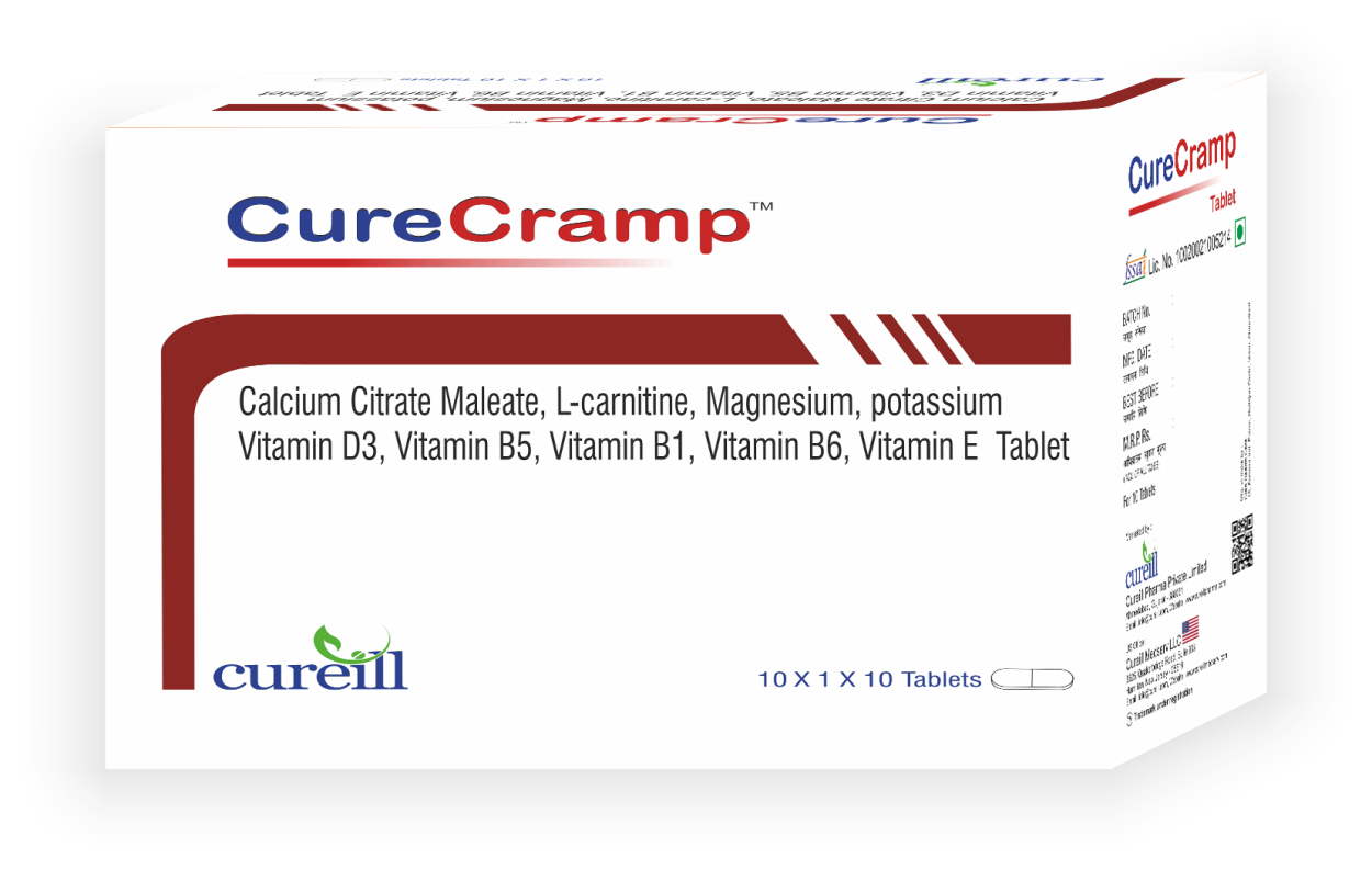 Cureill curecramp Tablet is a pain relief supplement which provides relief from the compelling urge to jerk or move legs to relieve the sensation of itching, tingling, crawling, or urge to move legs. Magnesium and vitamin E Provides the Muscle Relaxation. This tablet promotes relaxation, supports nerve conduction, and helps get relief from Leg cramps.